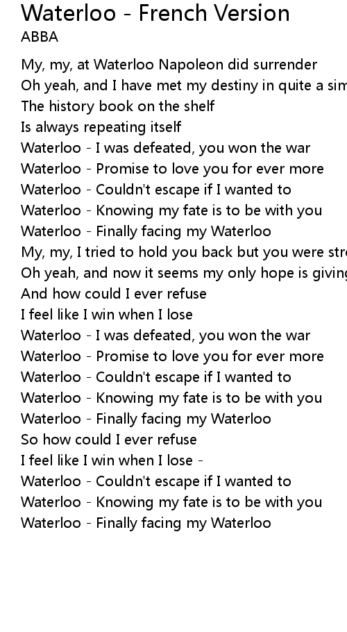 | [00:30.22] | Waterloo - I was defeated, you won the war |