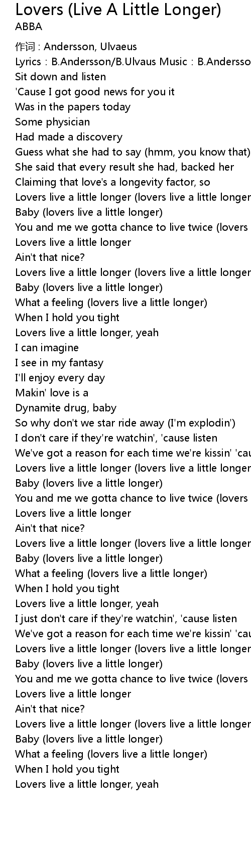 | You and me we gotta chance to live twice lovers live a little longer | |