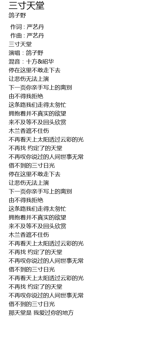 | [03:55.206] | bù zài zhǎo yuē dìng le de tiān táng |