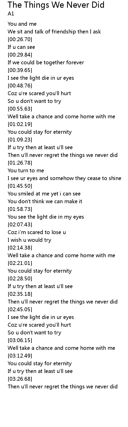 Then u'll never regret the things we never did |