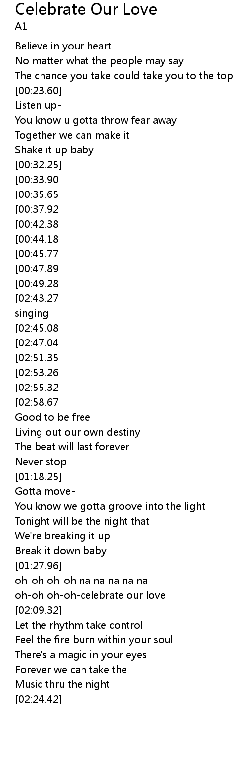 oh-oh oh-oh-celebrate our love |