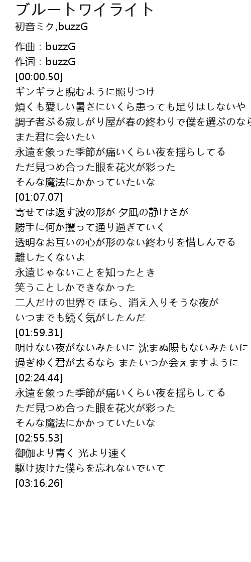 | [02:59.56] | 御伽より青く 光より速く |