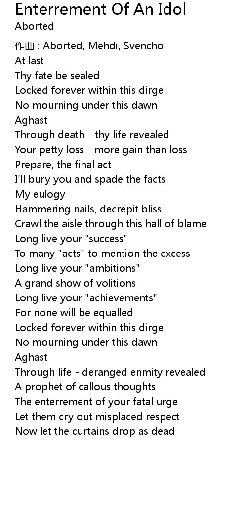 | Song | Enterrement Of An Idol |