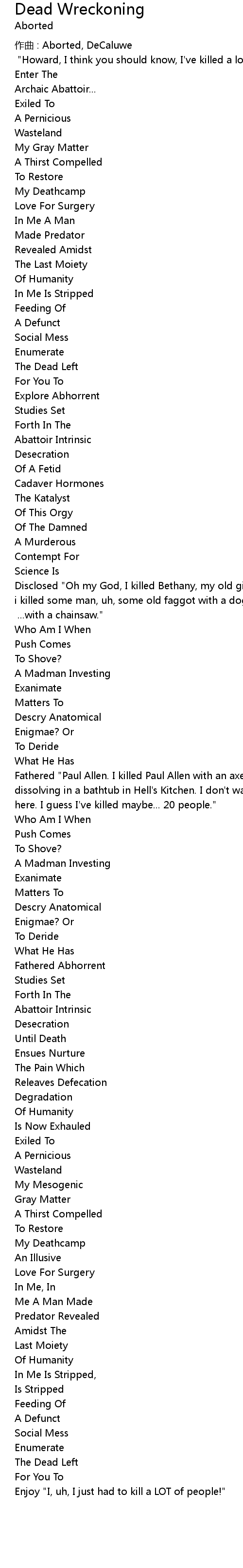 | Fathered " Paul Allen. I killed Paul Allen with an axe in the face. His body is dissolving in a bathtub in Hell' s Kitchen. I don' t wanna leave anything out here. I guess I' ve killed maybe... 20 people." | |