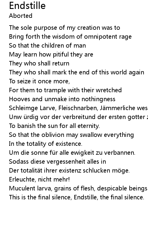 | This is the final silence, Endstille, the final silence. |