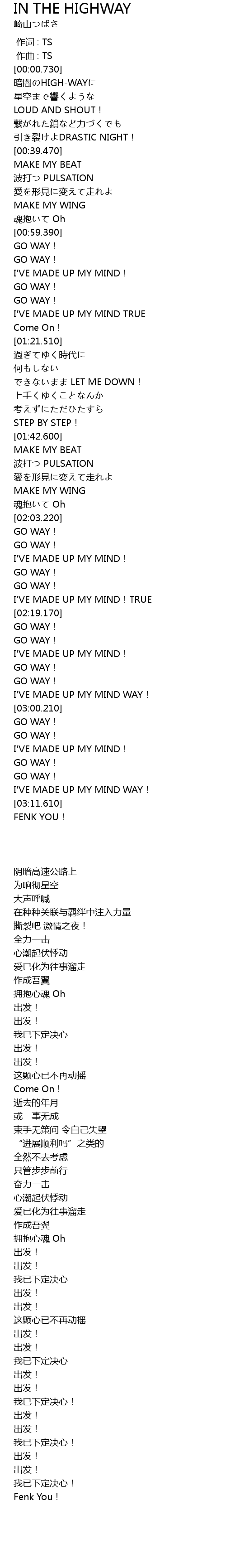 | [03:08.550] | I' VE MADE UP MY MIND WAY! |