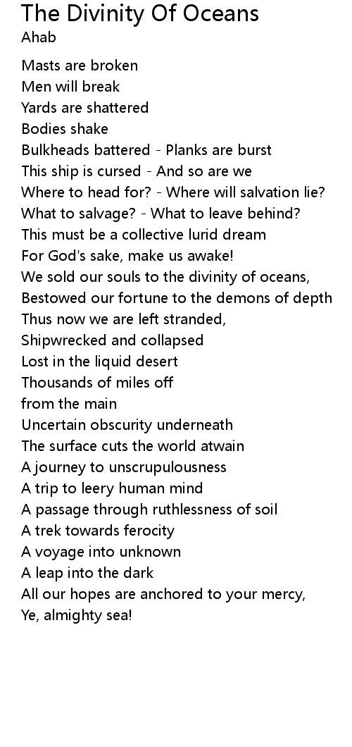 We sold our souls to the divinity of oceans, |