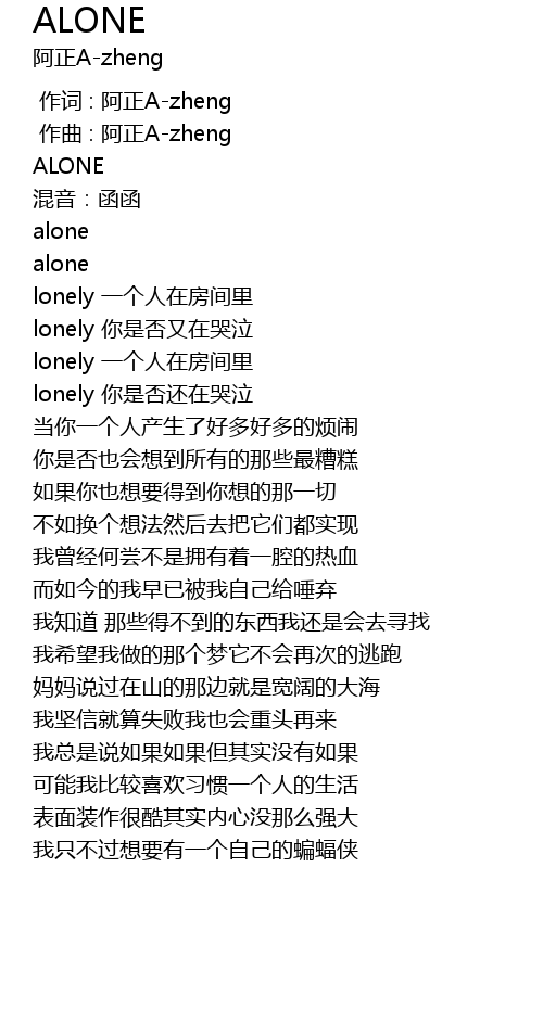 | [00:30.746] | lonely yi ge ren zai fang jian li |