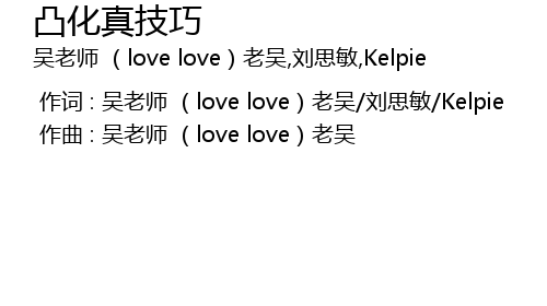 | [00:00.000] | 作词 : 吴老师 (love love)老吴/刘思敏/Kelpie |
