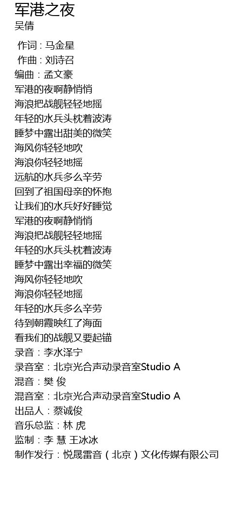 | [01:51.67] | 军港的夜啊静悄悄 |