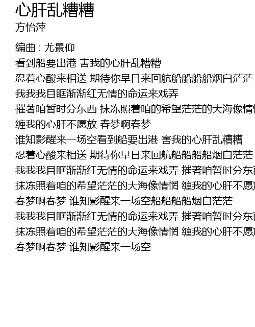 | 谁知影醒来一场空看到船要出港 害我的心肝乱糟糟 | |