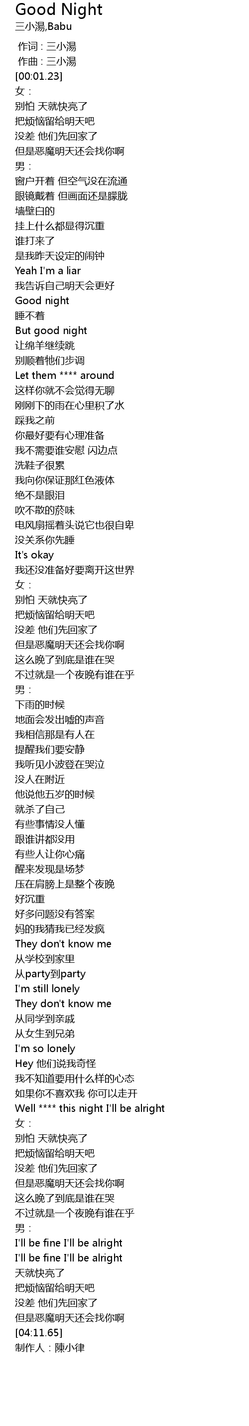 | [00:46.64] | Good night |