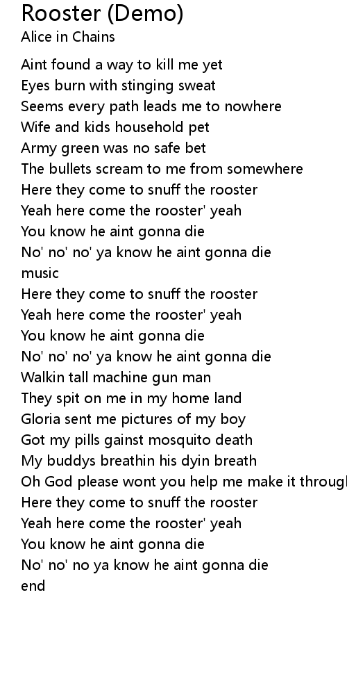Yeah here come the rooster' yeah |
