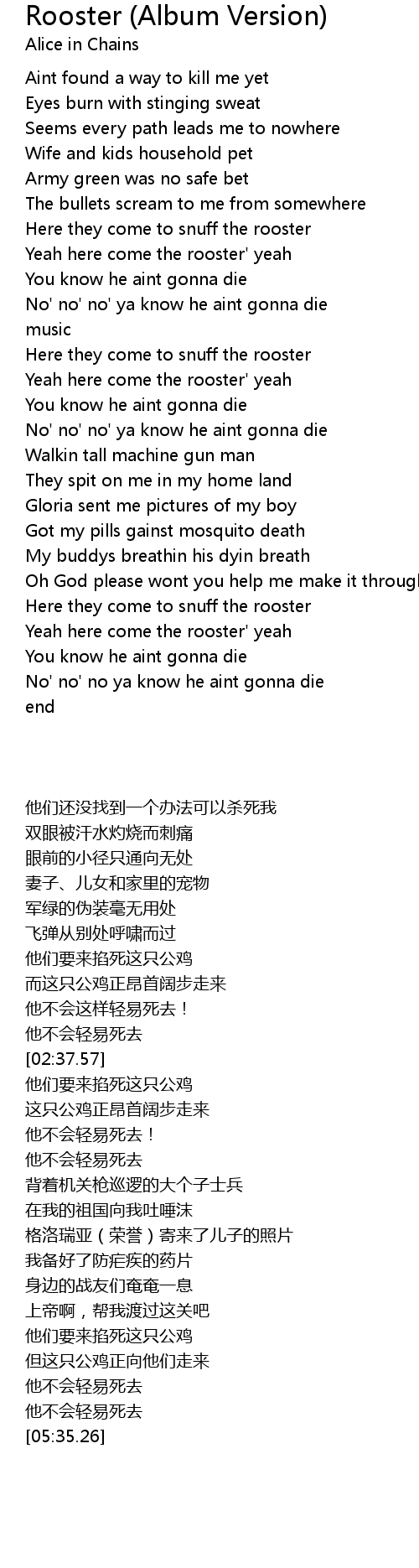 Yeah here come the rooster' yeah |