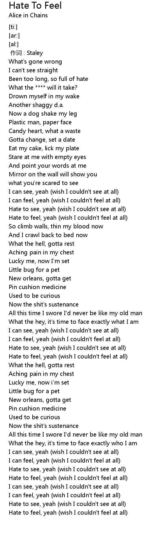 | [04:41.77] | Hate to feel, yeah (wish I couldn't feel at all) |