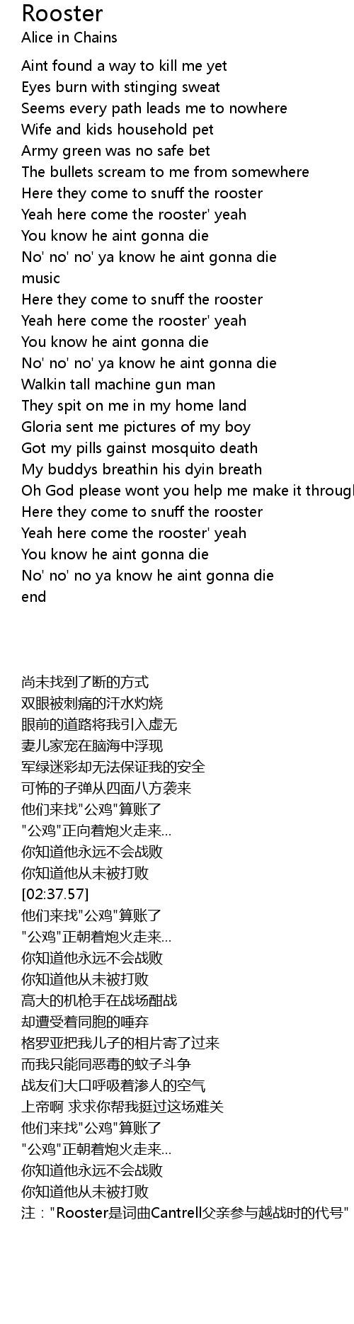Yeah here come the rooster' yeah |