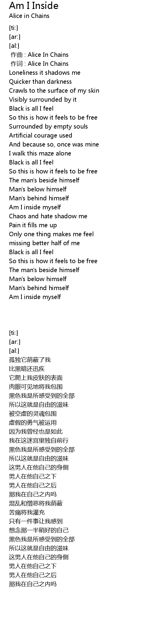 | [00:01.00] | zuò cí : Alice In Chains |