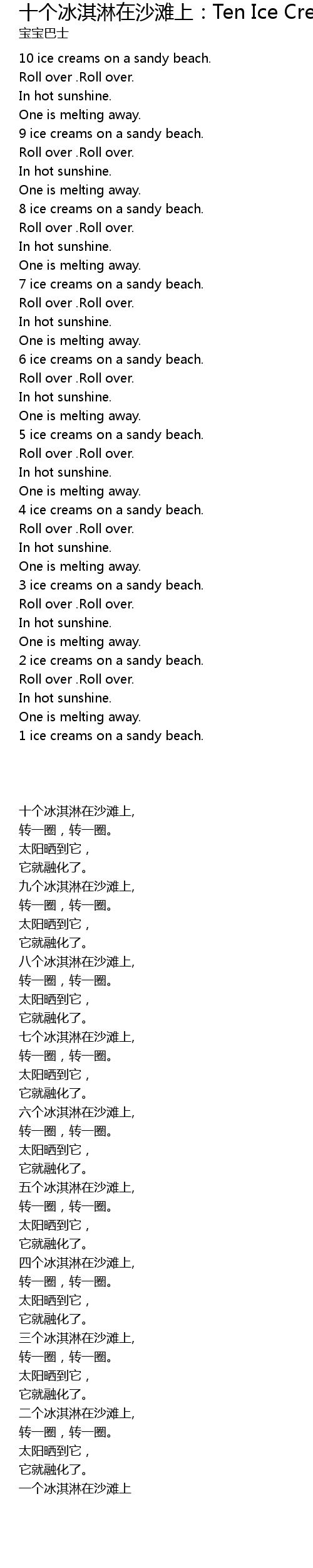 Song 十个冰淇淋在沙滩上:Ten Ice Creams on the Beach