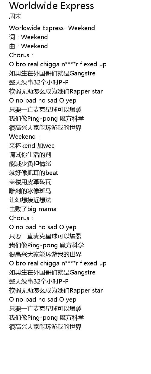 | [00:01.37] | Worldwide Express Weekend |
