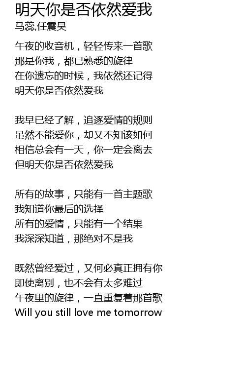 | míng tiān nǐ shì fǒu yī rán ài wǒ | |