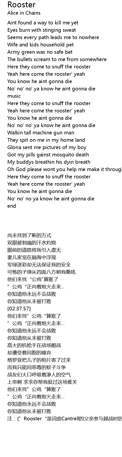 Yeah here come the rooster' yeah |