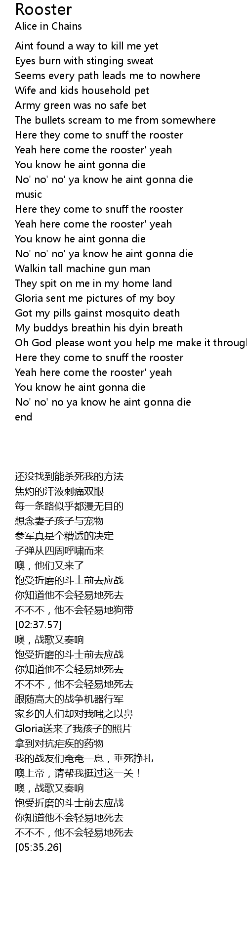 Yeah here come the rooster' yeah |