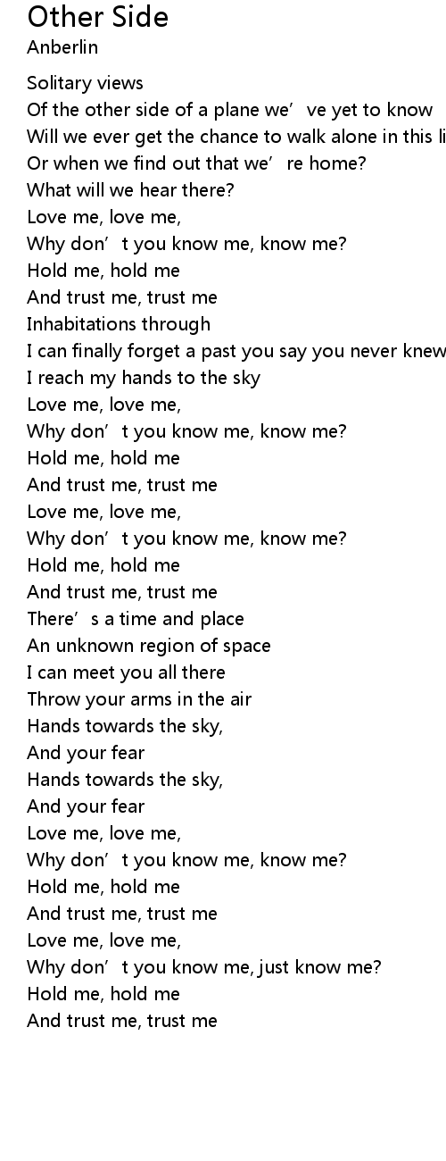 | Why don’t you know me, just know me? | |