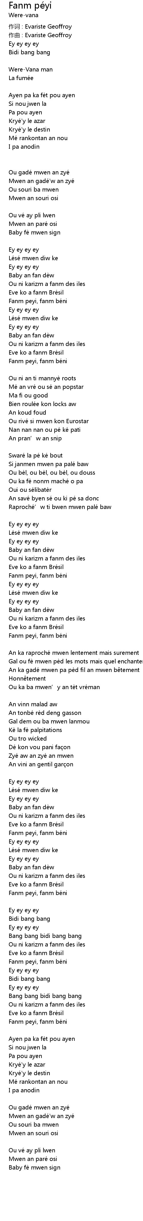 | Fanm peyi, fanm béni | |