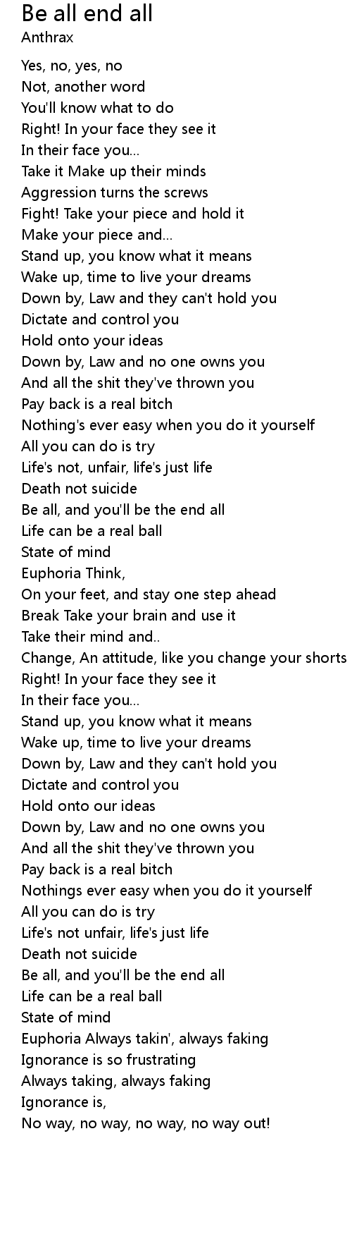 Be all end all Lyrics