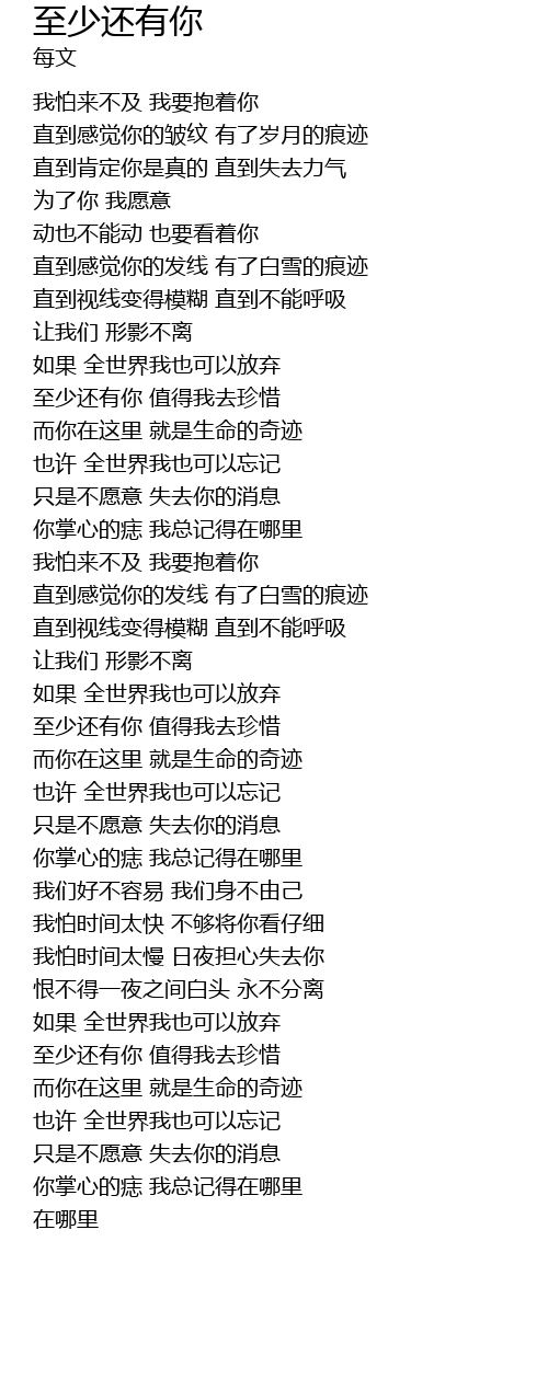 | 直到感觉你的皱纹 有了岁月的痕迹 | |