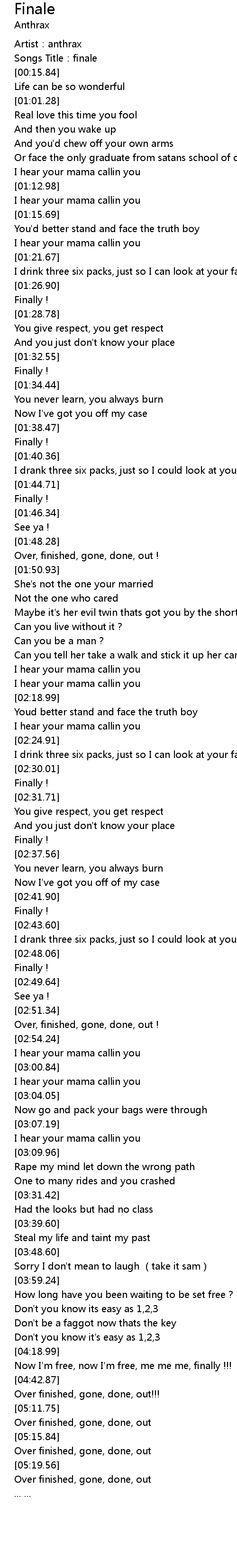 | [05:08.80] | Over finished, gone, done, out!!! |