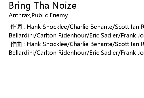 | [00:00.000] | zuò cí : Hank Shocklee Charlie Benante Scott Ian Rosenfeld Joseph Bellardini Carlton Ridenhour Eric Sadler Frank Joseph Bello Daniel Alan Spitz |
