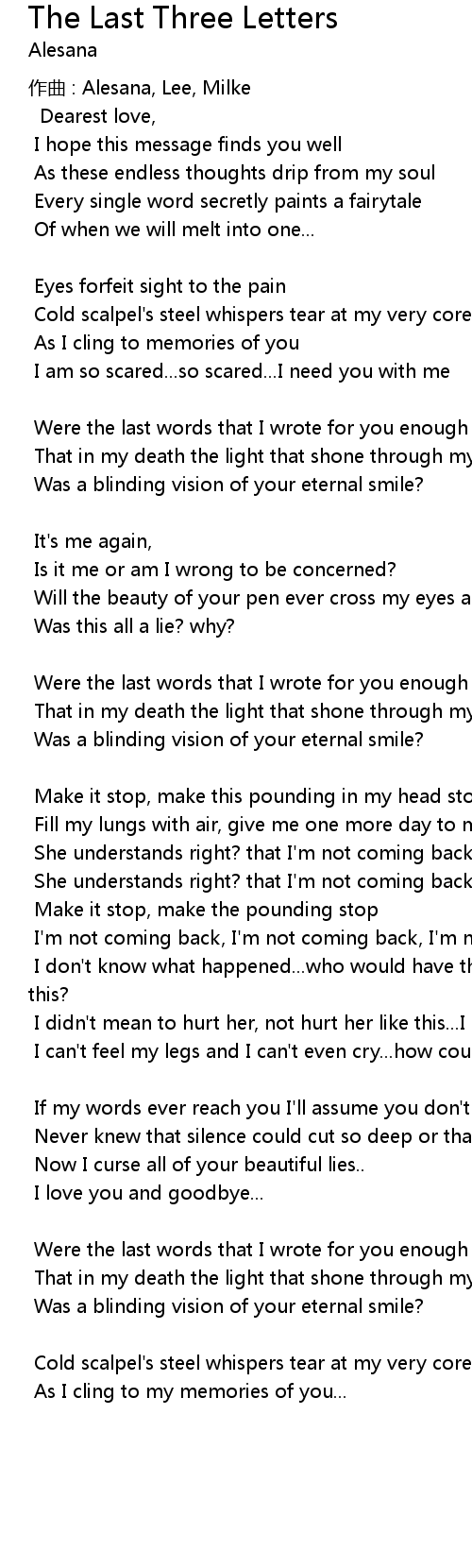 | Song | The Last Three Letters |