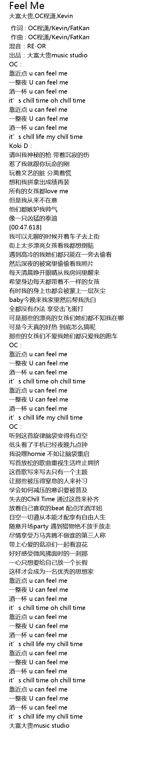 | [00:00.000] | zuò cí : OC chéng xiāo Kevin FatKan |
