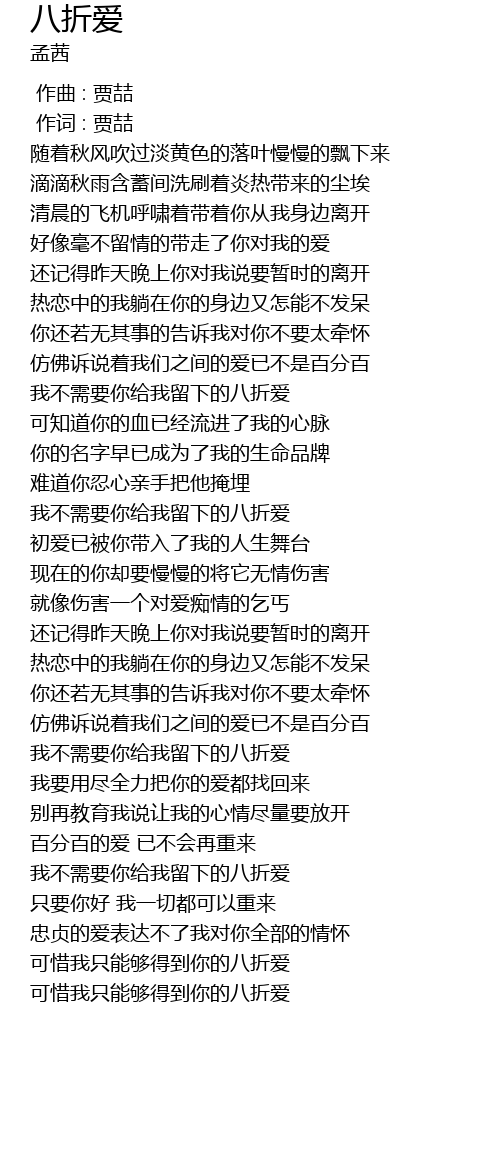 | [01:47.03] | 我不需要你给我留下的八折爱 |