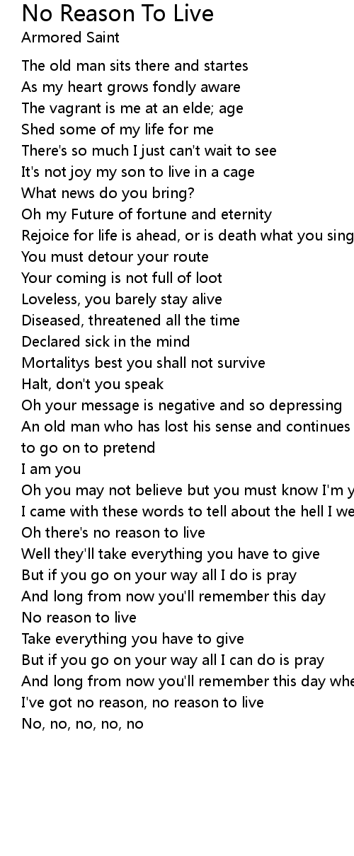I've got no reason, no reason to live |