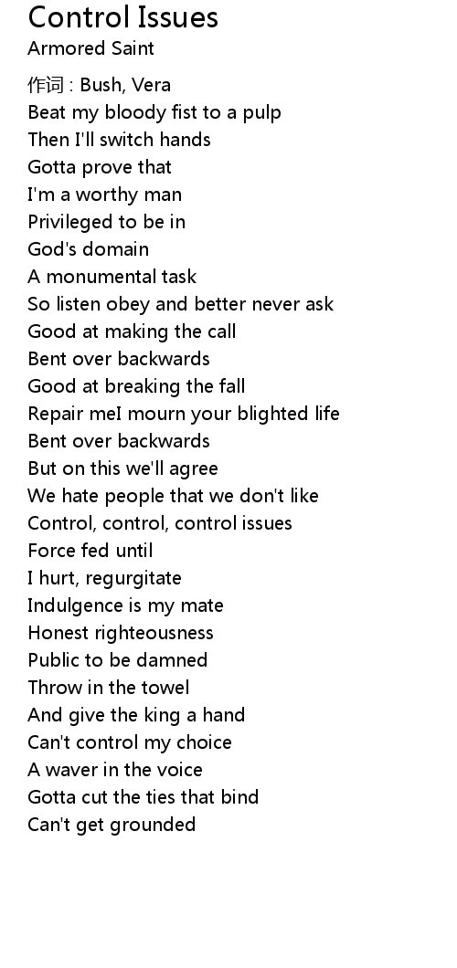 | Song | Control Issues |