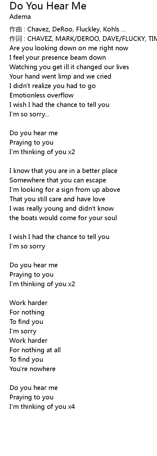 | 作词 : CHAVEZ, MARK/DEROO, DAVE/FLUCKY, TIM/KOHLSLAW, KRIS/RANSOM, MIKE | |