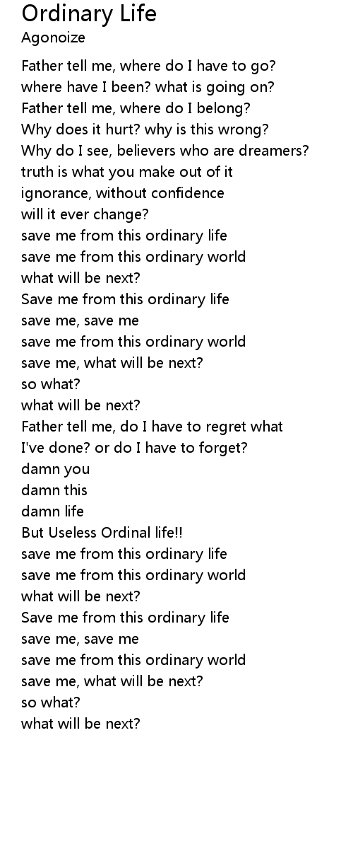 Save me from this ordinary life |