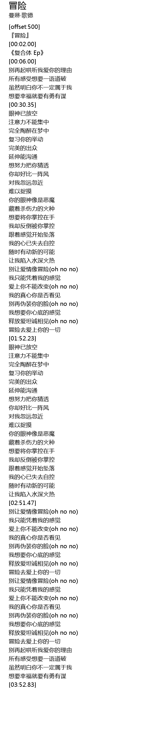 | [01:30.65] | 别让爱情像冒险(oh no no) |