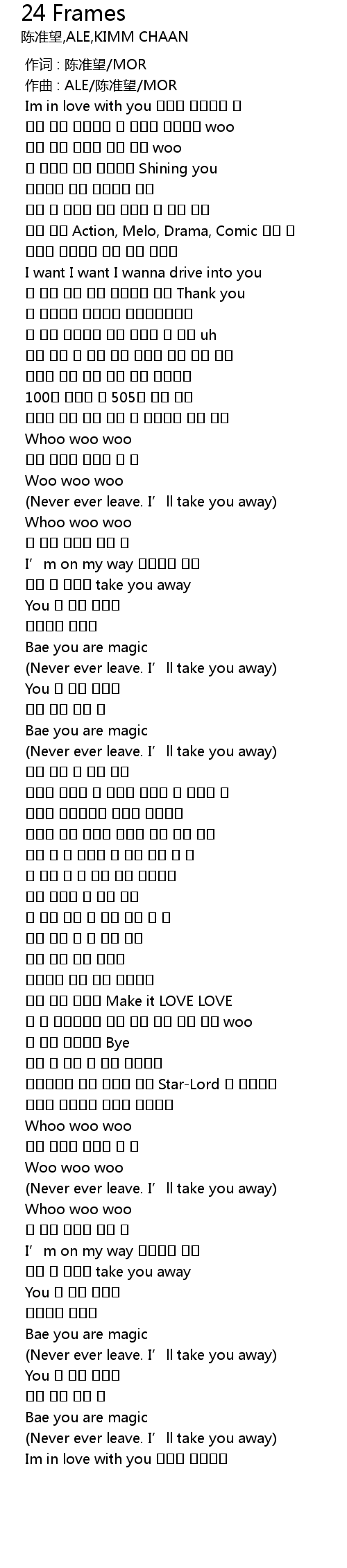 | [00:01.000] | zuo qu : ALE chen zhun wang MOR |