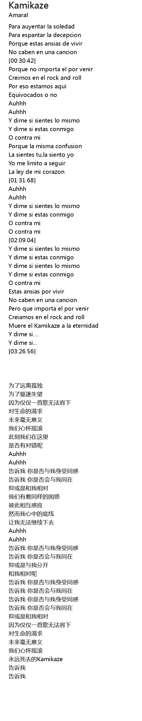 | [03:04.70] | Muere el Kamikaze a la eternidad |