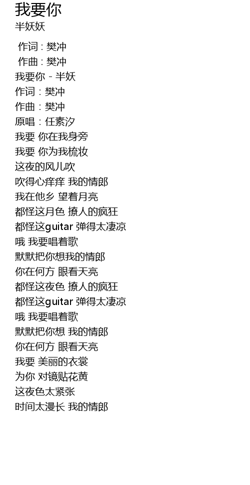 | [00:00.003] | wǒ yào nǐ bàn yāo |