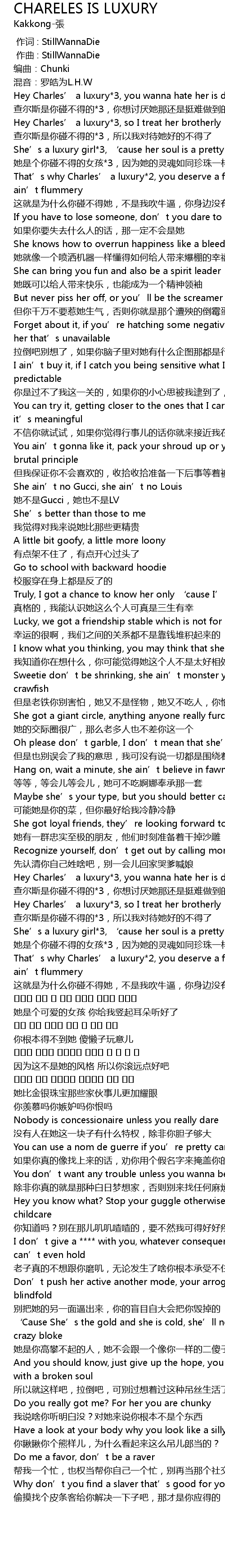 | [01:58.526] | Hey Charles’ a luxury*3, you wanna hate her is drudgery |