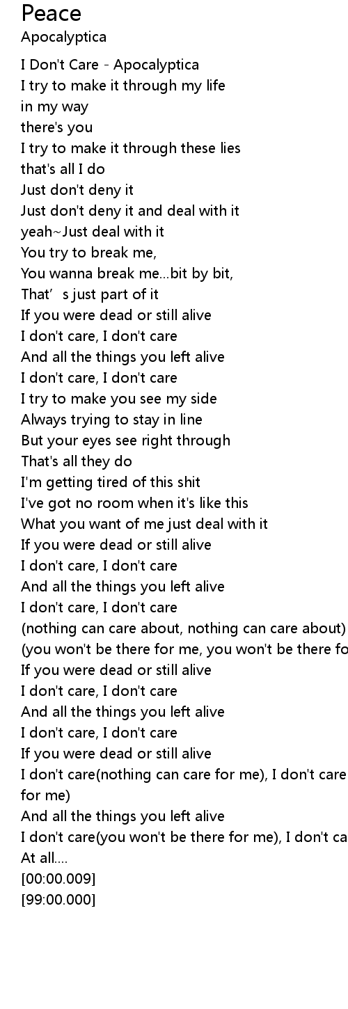 | [00:01.00] | I Don't Care - Apocalyptica |