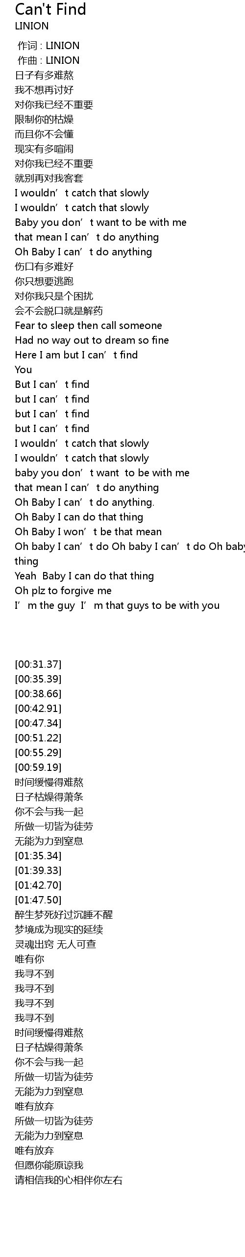 | [00:00.000] | 作词 : LINION |