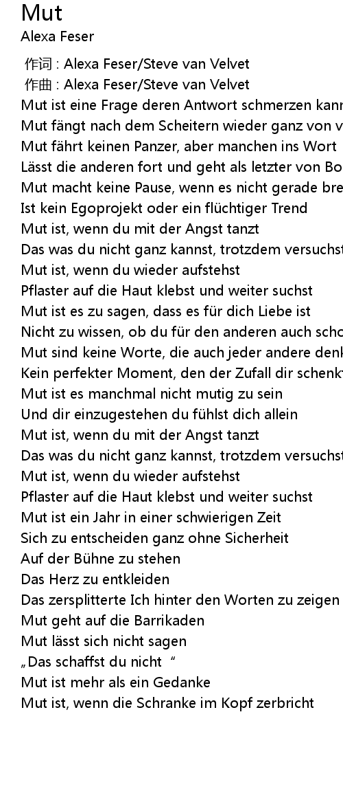 | [00:56.60] | Mut ist, wenn du mit der Angst tanzt |