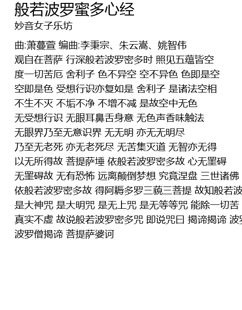 | 观自在菩萨 行深般若波罗密多时 照见五蕴皆空 | |