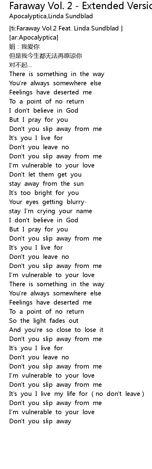 | [ti:Faraway Vol.2 Feat. Linda Sundblad ] | |