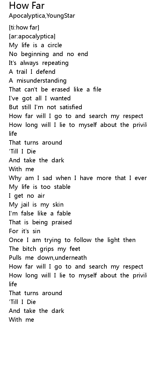 | [02:41.80] | How long will I lie to myself about the privilege of my life |